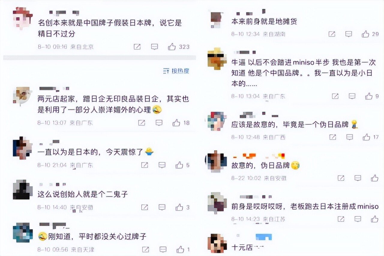 此后,“名创优品辱华”“名创优品精日”等词条快速登上微博热搜榜,吃瓜网友们继续扒料,“名创优品店内不准放中文歌”“与国外企业签约仪式上挂日本国旗”等疑似辱华黑历史一时间甚嚣尘上。