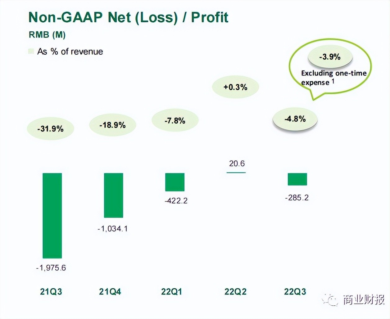 前三季度的Non-GAAP口径下亏损率降至-4.8%,相较于去年优化了27.1%。