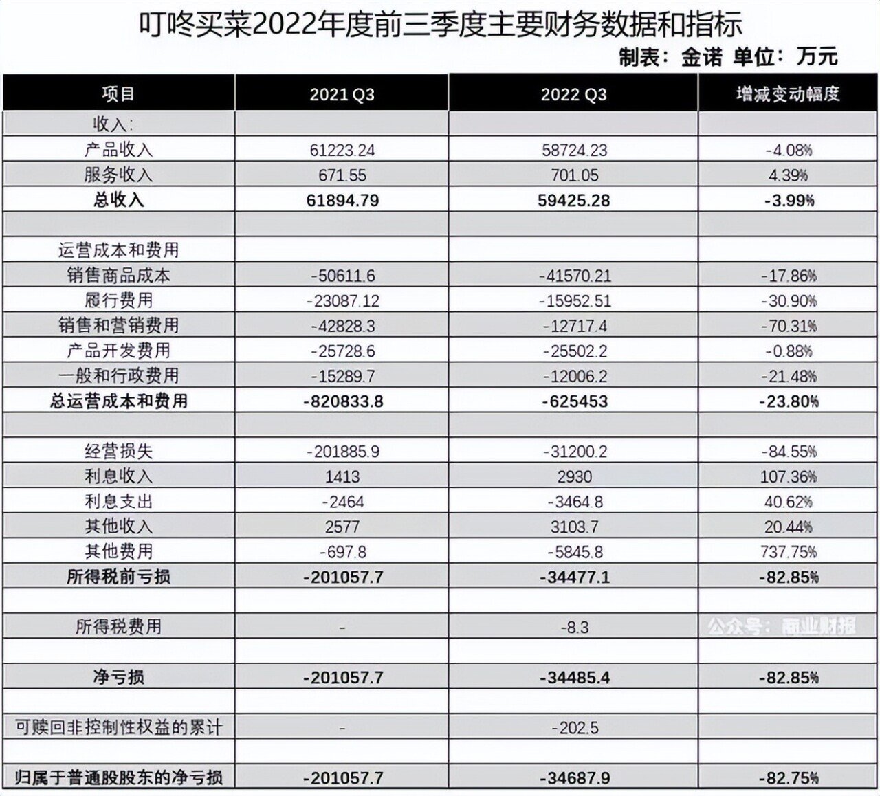 财报数据反映,在2022 的前三季度,叮咚买菜最大的成效在于成本控制,将亏损最小化。