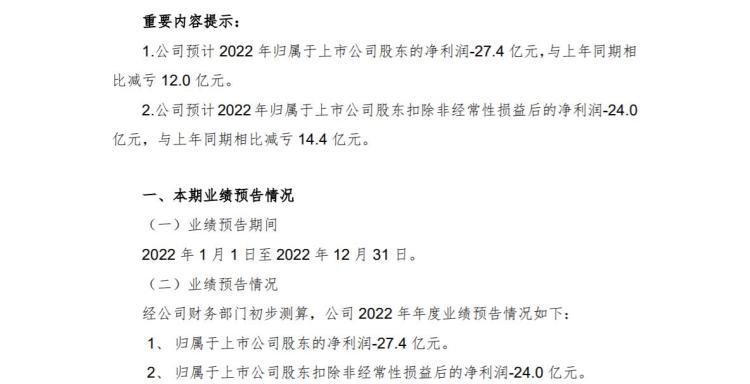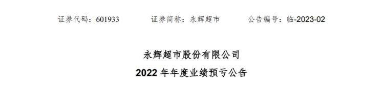 值得注意的是,就在今年1月31日,永辉超市曾发布2022年年度业绩预亏公告:公司预计2022年归属于上市公司股东的净利润-27.4亿元,与上年同期相比减亏12亿元;公司预计2022年归属于上市公司股东扣除非经常性损益后的净利润-24亿元,与上年同期相比减亏14.4亿元。