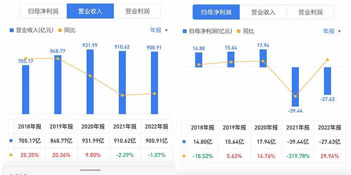4月28日晚间,永辉超市(SH:601933)披露年报,2022年实现营业收入900.91亿元,同比下降1.07%;净利润亏损27.63亿元,去年同期亏损39.44亿元。