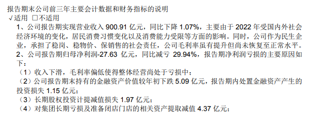 对于2022年的亏损,永辉超市在财报中给出了以下原因: