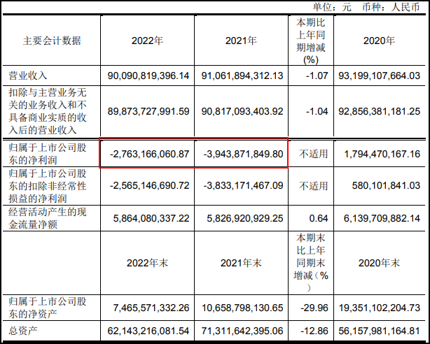 财报显示,永辉2022年实现营业收入900.91亿元,同比下降1.07%;归属于上市公司股东的净利润-27.63亿元,上年同期亏损39.44亿元,相比减亏29.94%。