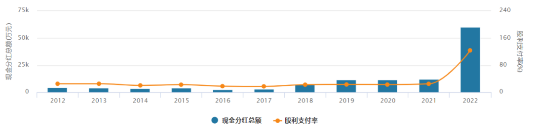 在2012年至2021年间,红旗连锁的股利支付率在17%-25%左右,收益留存率则在73%以上。而在2022年红旗连锁分红已经分光了当年净利润。