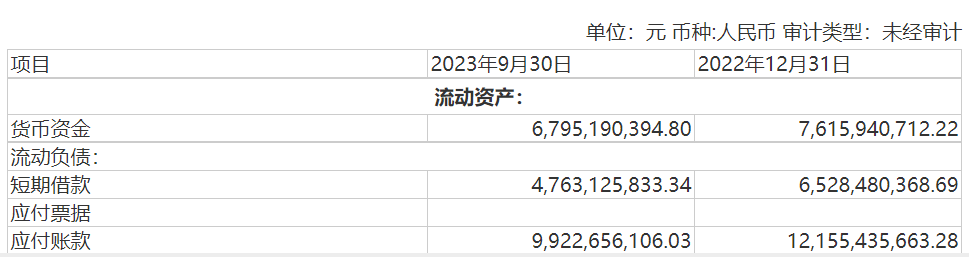 永辉超市2023第三季度财报。