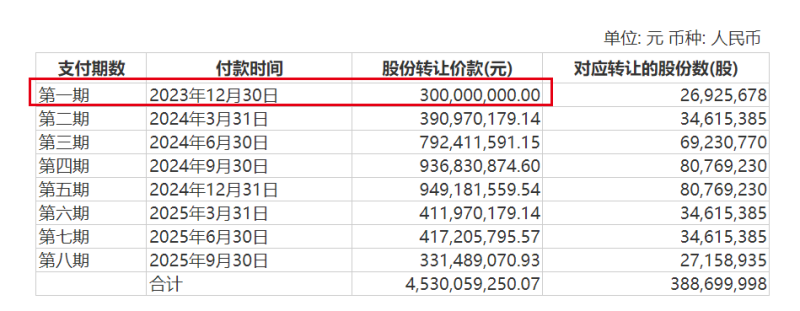 其中,第一期的付款时间正好是2023年12月30日。第一期股权交易完成交割后,2023年公司将增加税前利润2859.58万元,增加现金流量3亿元。