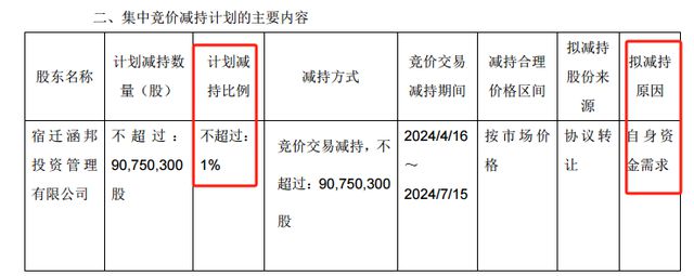 3月20日晚,永辉超市第六大股东宿迁涵邦投资管理有限公司(下文简称:“宿迁涵邦”)拟减持不超过9075.03万股,占公司总股本比例不超过1%。本次拟减持原因为“自身资金需求”。按公告当日收盘价(2.55元)估算,宿迁涵邦本次拟套现金额超过2亿元。