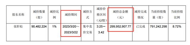 2023年3月23日,永辉超市公告称,持股5%以上股东、董事长张轩松在2023/3/20~ 2023/3/22期间,通过集中竞价交易方式,合计减持总金额约为2.99亿元。