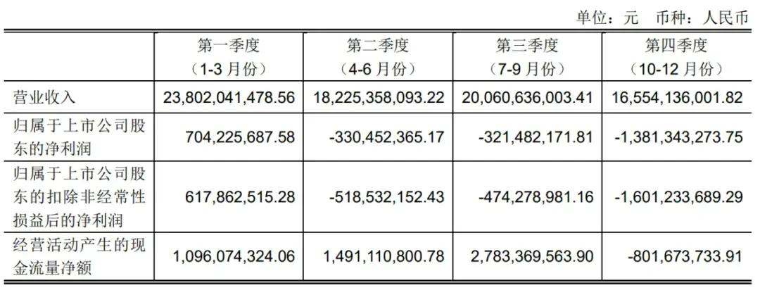 永辉超市2023年第四季度营收为165.54亿元,净亏损为13.81亿元,扣非后净亏损为16亿元。