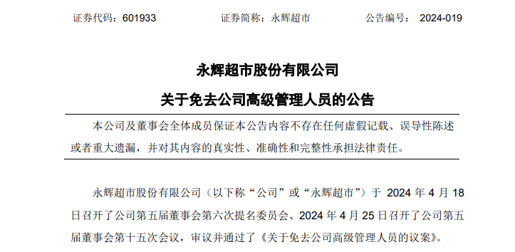 近日,永辉超市(601933.SH)发布了一份重要公告,宣布免去吴光旺和林建华两位公司副总裁的职务。