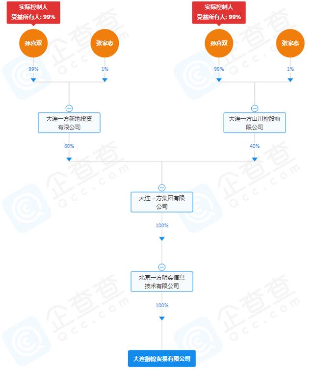 信息显示,大连御锦是大连一方集团的全资孙公司,直接股东是北京一方明实信息技术有限公司。股权穿透后,实际控制人为孙喜双,受益股份比例99%。