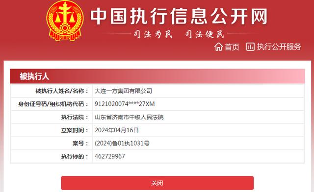 屋漏偏逢连夜雨。就在第2期款项延迟支付的4月份,孙喜双的大连一方集团还新增了一条被执行人信息,执行标的金额高达4.63亿元。