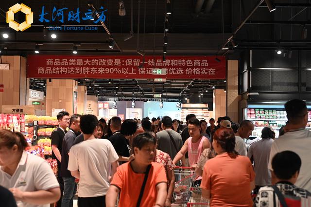 8月7日9:30,胖东来调改的永辉超市郑州瀚海海尚店如期恢复营业。据了解,该店位于郑州市金水区东风路与丰庆路交汇处的瀚海海尚购物中心,是胖东来计划调改的郑州第二家永辉超市。与调改首店相比,此次调改门店对胖东来商品结构还原度更高,被戏称胖东来的“郑州分胖”。当天上午,现场顾客顶着高温依然排成了“长龙”。