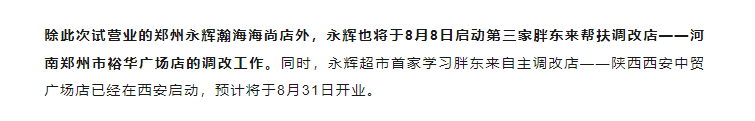 此外,永辉超市首家学习胖东来自主调改店——陕西西安中贸广场店已经在西安启动,预计将于8月31日开业。