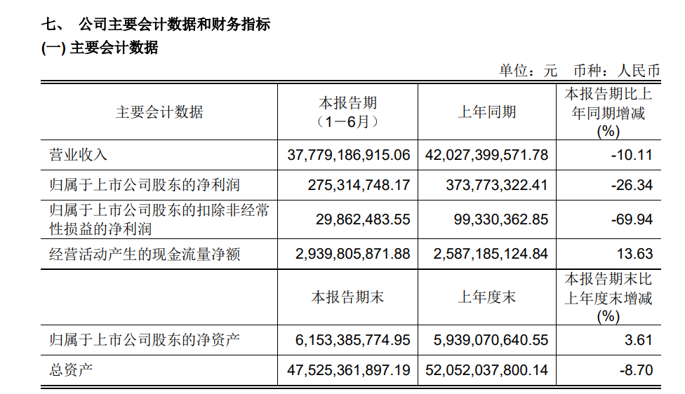 2024年上半年,永辉超市营收为377.79亿元,较上年同期的420.27亿元下降10.11%;归属于上市公司股东的净利润2.75亿元,同比下降26.34%;归属于上市公司股东的扣除非经常性损益的净利润2986万元,同比下降69.94%。