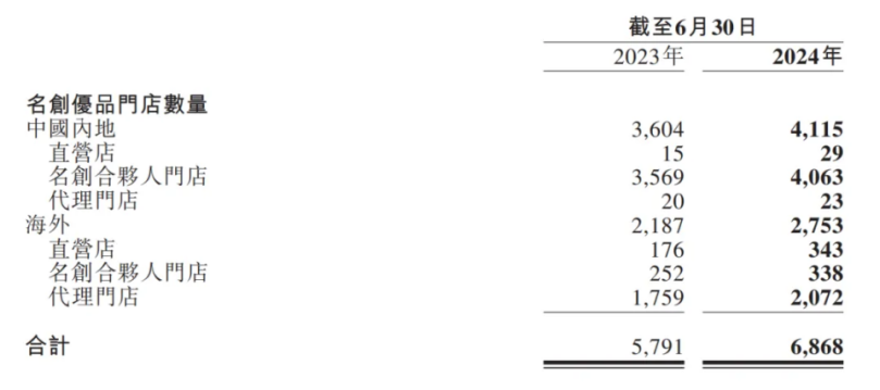 回望名创优品一路崛起,加盟商模式扩张功不可没,截至2024年6月30日,公司内地总门店数达到4115家,其中直营店仅29家。海外门店数2753家,其中直营门店数343家。整体占比不足6%。