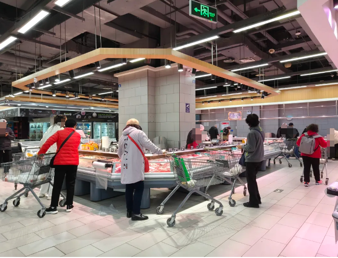 永辉超市因为临近万达商圈,周六日人气相对火爆。“平时的话,早上人会比较多,大多是奔着新鲜的蔬菜、水果、肉、海鲜的。”一位顾客称。