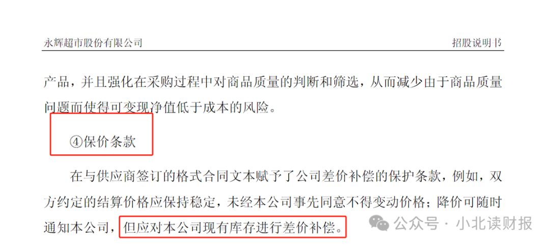 招股书里还提到了一个保价条款,让永辉超市的存货几乎不可能发生贬值。