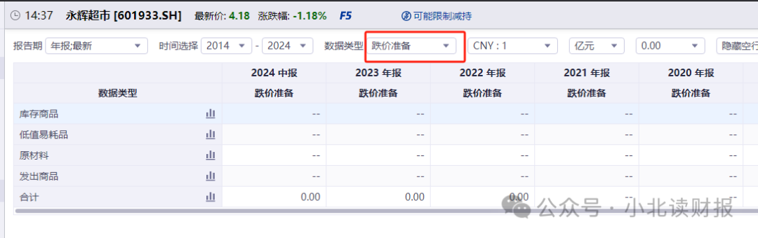 但是今天在看永辉超市这些年的存货跌价准备时,发现它每年计提的存货跌价准备都是0。