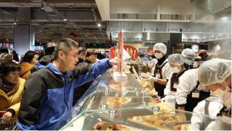 “福州人过年喜欢吃本地菜、尝乡土味道,所以我们上架了闽清的毛脚鸡、黑猪肉、永泰的富泉羊、琅岐的青蟹、龙祥岛的甘蔗等等,年货方面,礼饼、芋泥、八宝饭、年糕这些都是我们精选的商品,还有福州特色的工艺品也是很好的年节伴手礼……”门店相关负责人说。