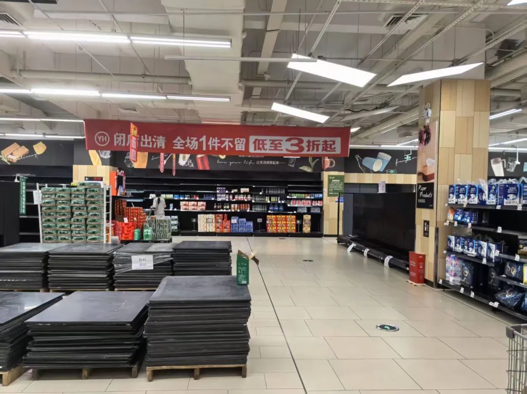 《公告》称“公司总部正在各项资源进行统一整合与优化,经过综合评估,决定本店将于5月10日起停止营业。”超市内多处挂着“闭店出清,全场1件不留,低至3折起”的横幅,不少货架上的商品已被清空。新建区市民熊女士告诉记者:“每天都要来1-2趟,现在要关了,感觉以后购物不太方便。”