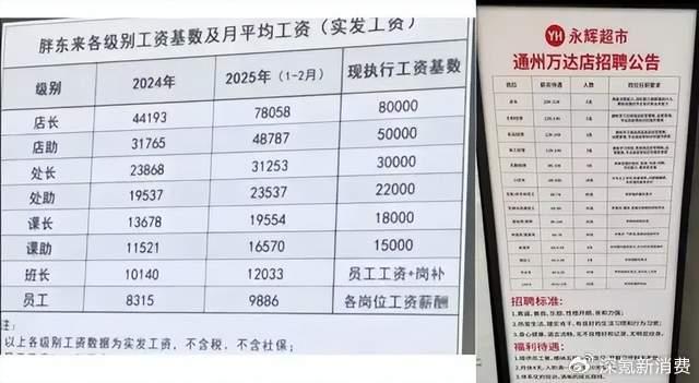 在员工层面,永辉的用人逻辑其实还是没有达到质变。尽管数据显示,永辉员工平均薪资涨幅超20%,部分门店如永辉郑州信万广场店的工资涨幅达80%,但值得注意的是,这一增长是建立在原本偏低的薪资基数之上的。