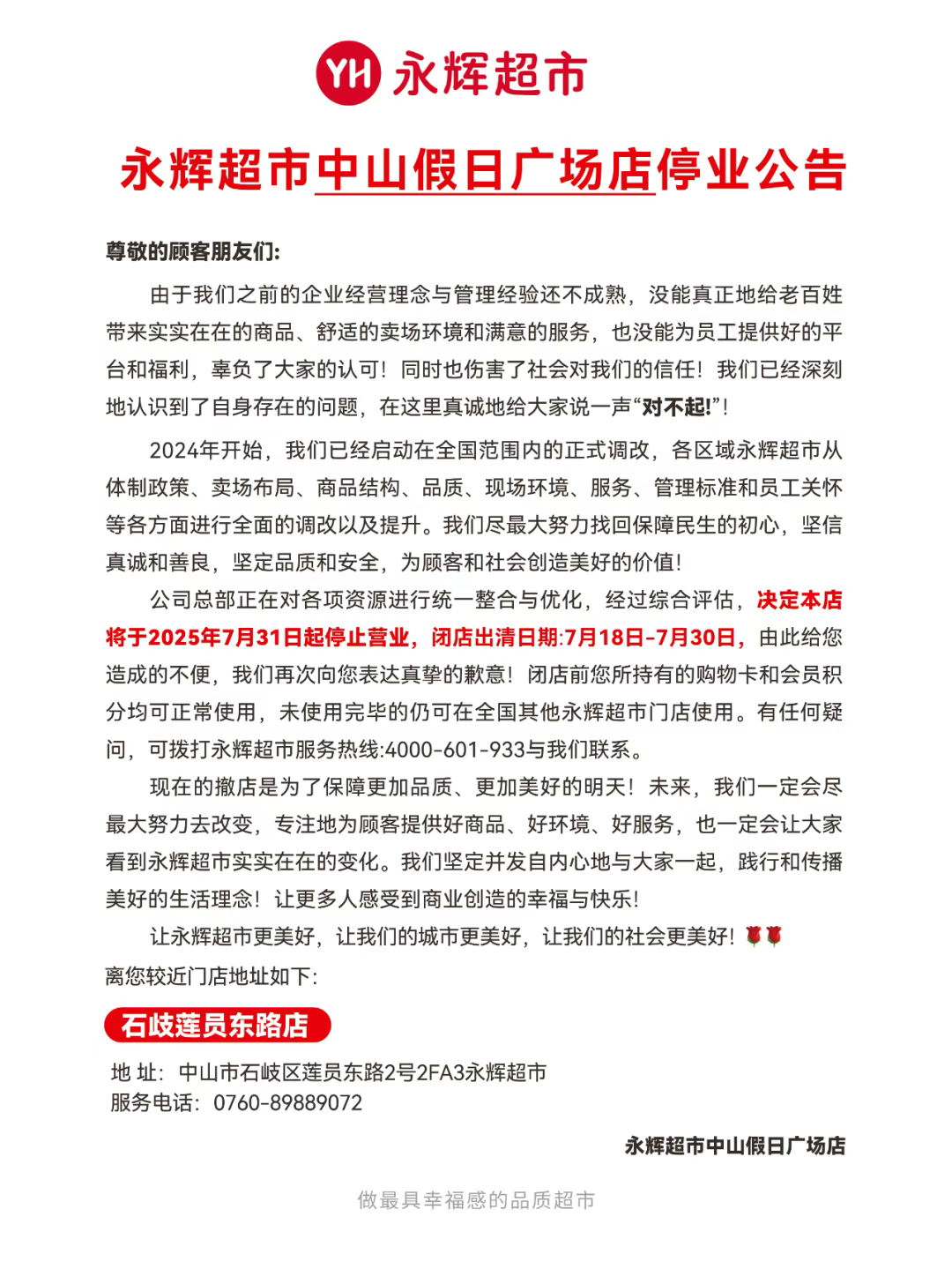 中山会另外新开2家新永辉,假日广场店永辉原址进驻大概率是新永辉。