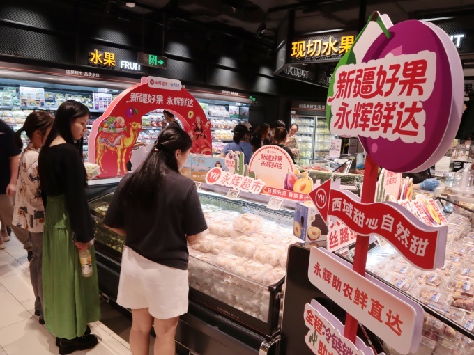 此外,永辉超市还在店内设立“新疆水果专区”,打造沉浸式新疆风情消费场景,全面呈现新疆水果的原产地优势、品质特色和时令价值。