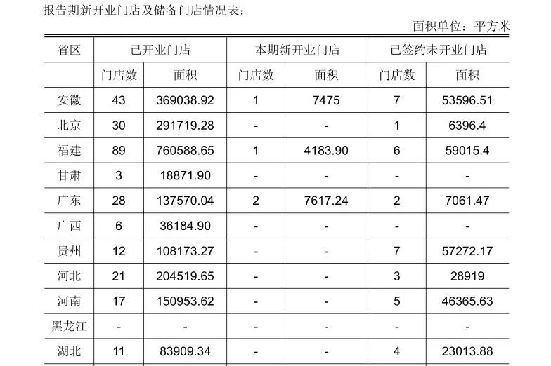 甘肃、宁夏的已开业门店数分别为3家和1家,保持不变。