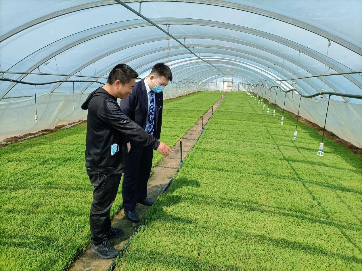 工作人员实地考察农户稻田育苗情况(央广网发建设银行行杜尔伯特支行供图)