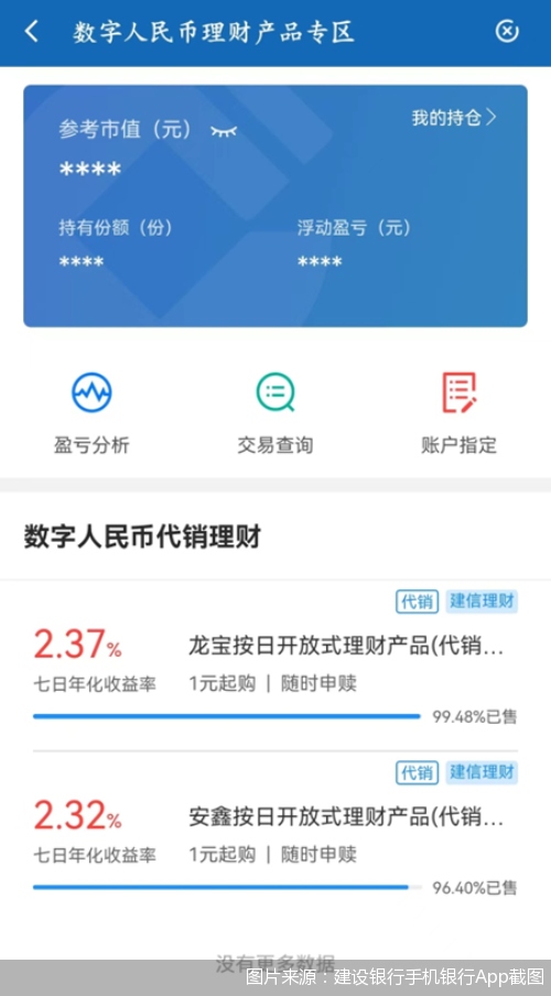 6月15日,北京商报记者注意到,建设银行上线了数字人民币理财产品专区,为用户提供数字人民币理财服务。