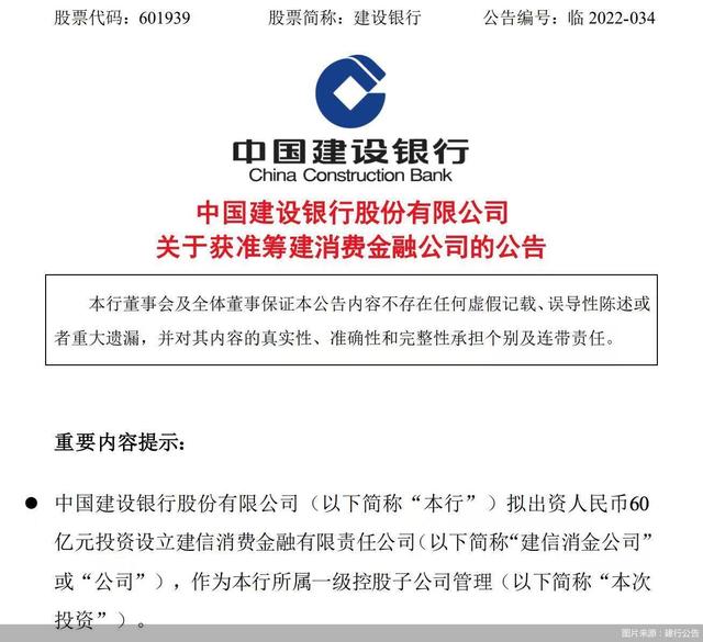 北京商报记者了解到,早在2019年6月,建设银行便提出了设立消费金融子公司议案,但后续一直未有新动向。过去的几年间,关于建设银行布局消费金融牌照的消息在业内也偶有传言。