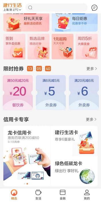 建设银行持续推进线上消费生态场景建设,在“建行生活”App平台拓展特惠、分期、积分等信用卡服务