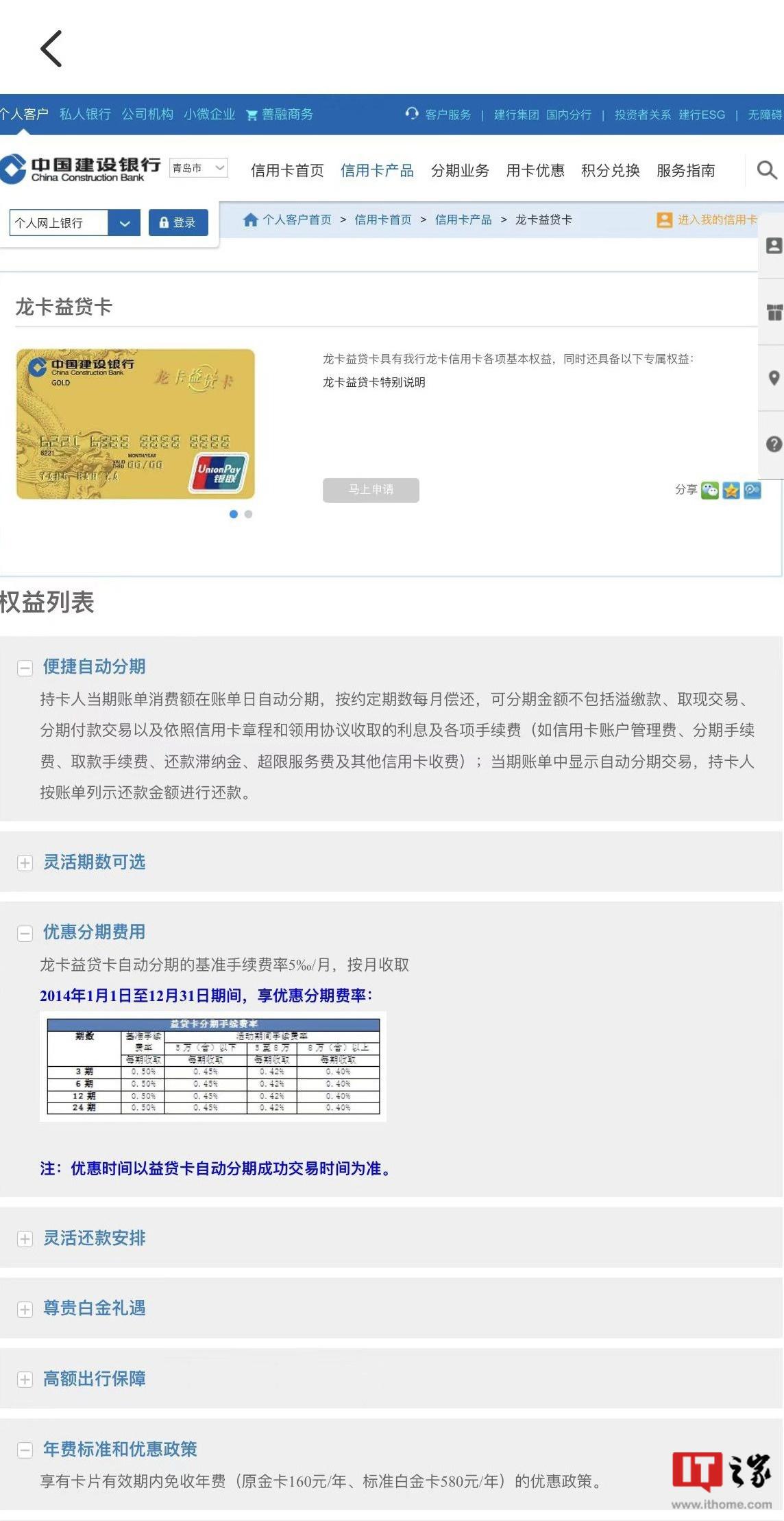 ▲龙卡益贷卡产品页面