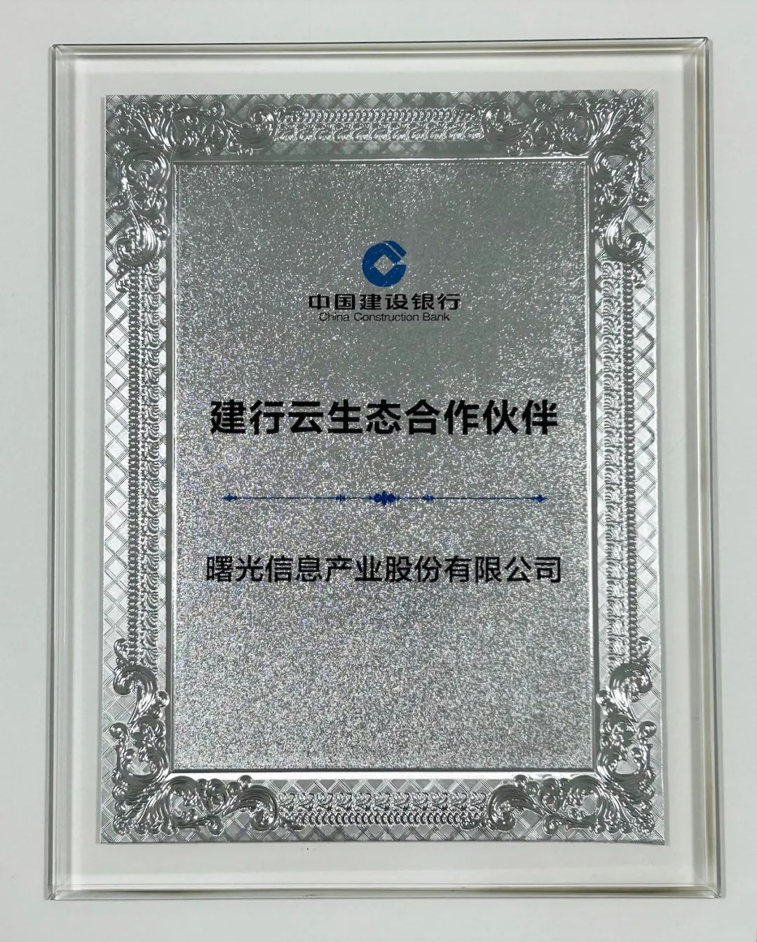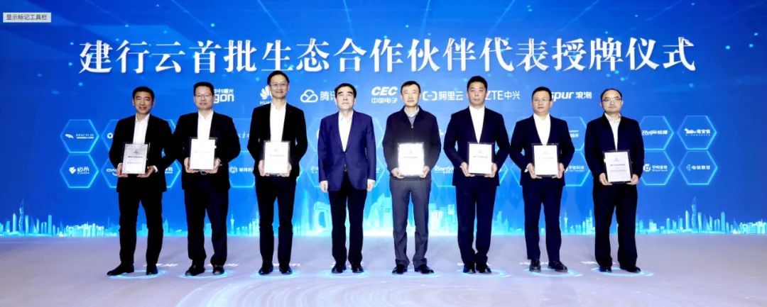 发布会上,建设银行推出“云霄”生态合作计划并公布首批“建行云”生态合作伙伴,中科曙光高级副总裁任京暘和副总裁李一昂作为中科曙光的代表,参加了首批六家生态合作伙伴的授牌仪式。
