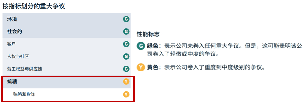 虽然建行成为全球银行业ESG等级最高的银行之一,并在多个议题上表现领先,但MSCI的评估仍然显示,建行在治理范畴卷入争议,使其在“公司治理”议题的风险管理部分失分。