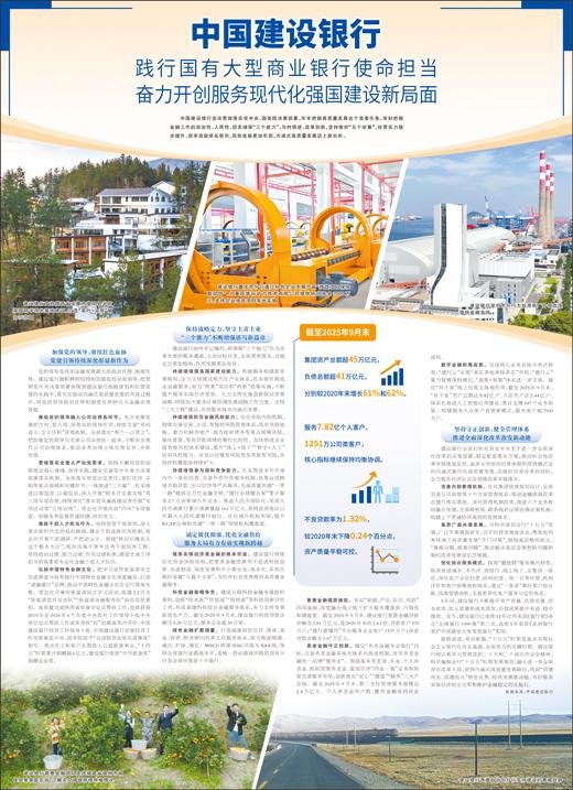 科技金融奋楫争先。建成五级科技金融专属组织架构,创新“技术流”“价值流”“投资流”等科技创新评价工具,形成善建科技综合金融服务体系,有力支持发展新质生产力。截至2025年9月末,建设银行科技贷款余额为5.26万亿元,服务企业超30万家。