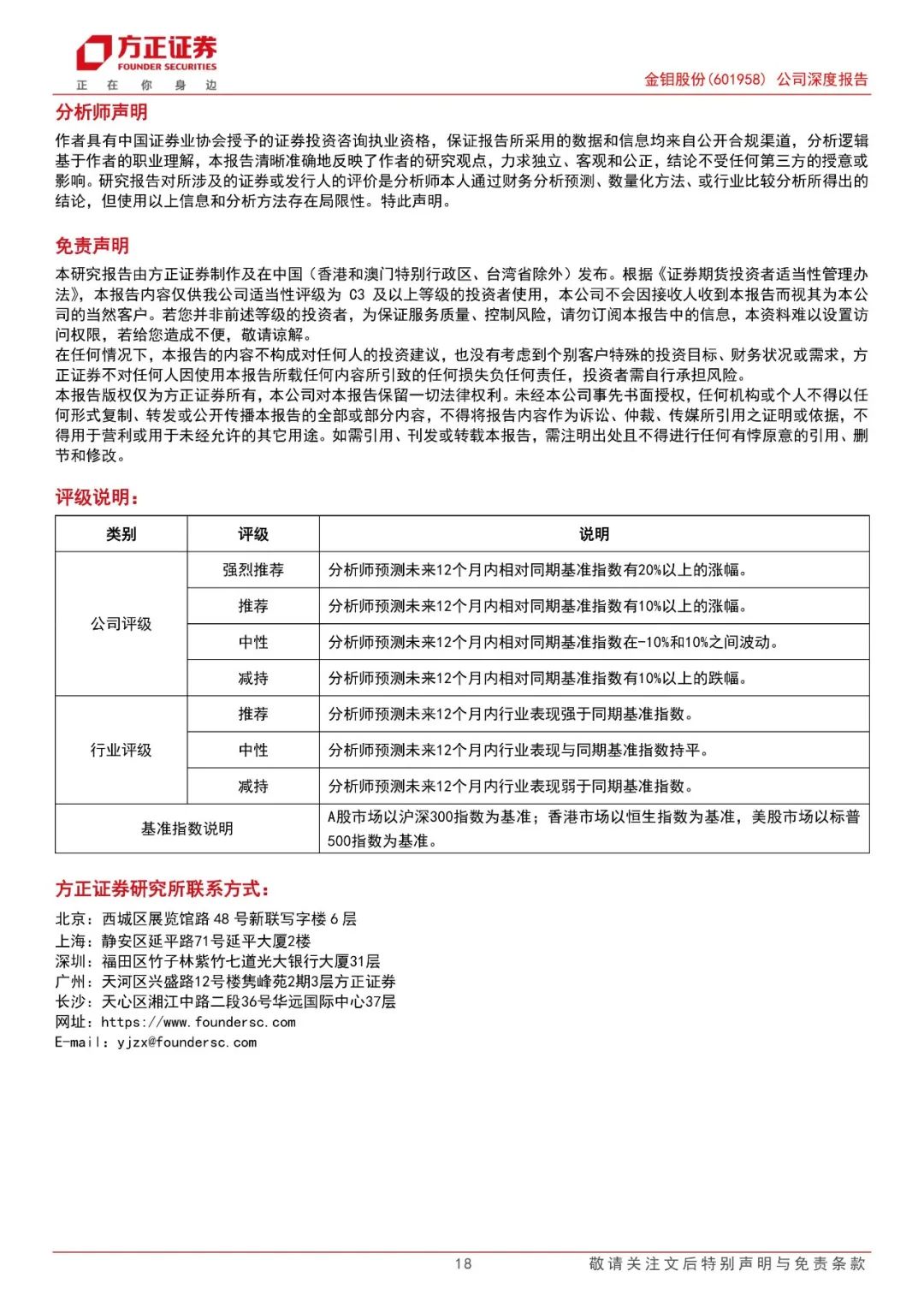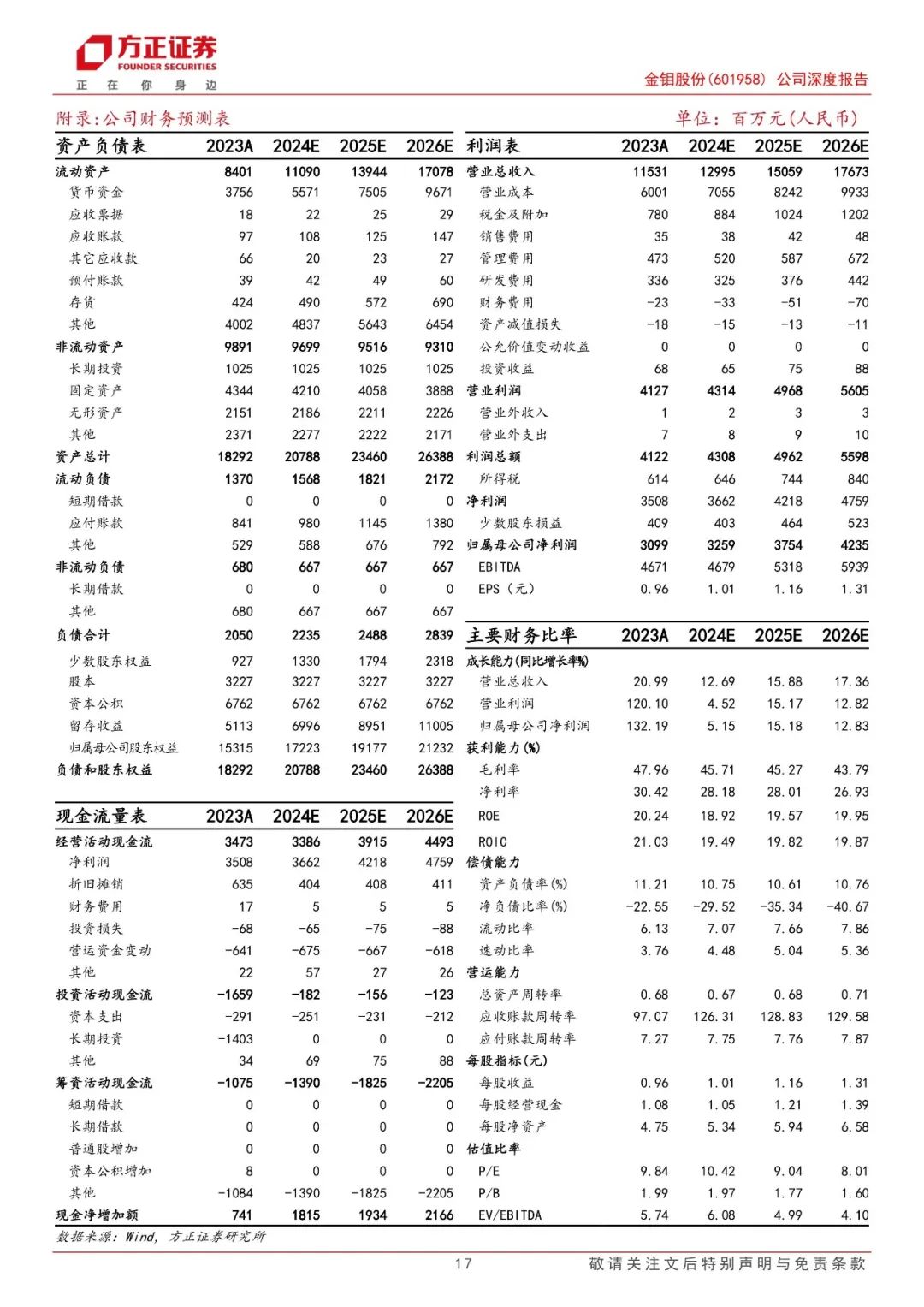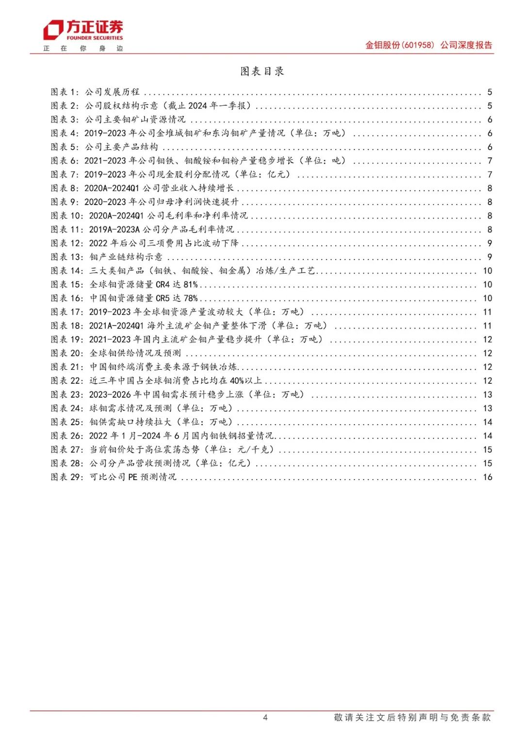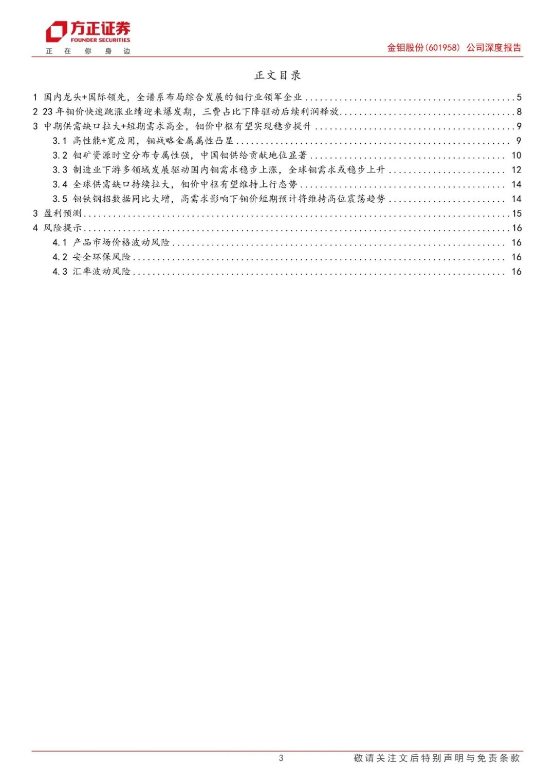 盈利预测:综上所述我们认为,公司作为资源储量丰富的国内钼业龙头,业绩有望伴随供需缺口扩大之下钼价中枢上行实现加速释放;同时,考虑到公司业务谱系全面,预计公司钼粉、钼制品等钼金属业务将伴随下游应用场景拓展实现加速排产。在此情况下,预测公司2024-2026年分别实现营业收入129.95/150.59/176.73亿元,归母净利润32.59/37.54/42.35亿元,对应PE为10.42/9.04/8.01x,给予“推荐”评级。