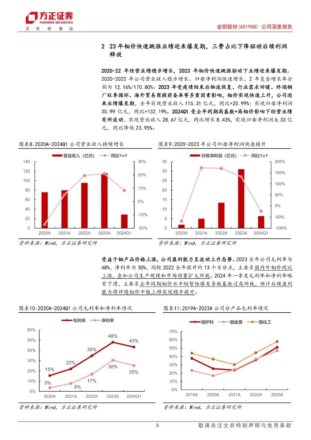 短期维度看,2024年1-6月钼铁钢招数据同比大增30%处于高景气周期,高钼价运转下公司业绩有望实现超预期释放。据钨钼云商数据披露,2024年1-6月国内钼铁钢招量合计约71857吨,月均钢招量约11976吨,较去年同期大增约30%。我们认为,高需求影响下,钼价短期预计将维持高位震荡趋势,公司有望充分受益于此阶段,业绩有望实现超预期释放。
