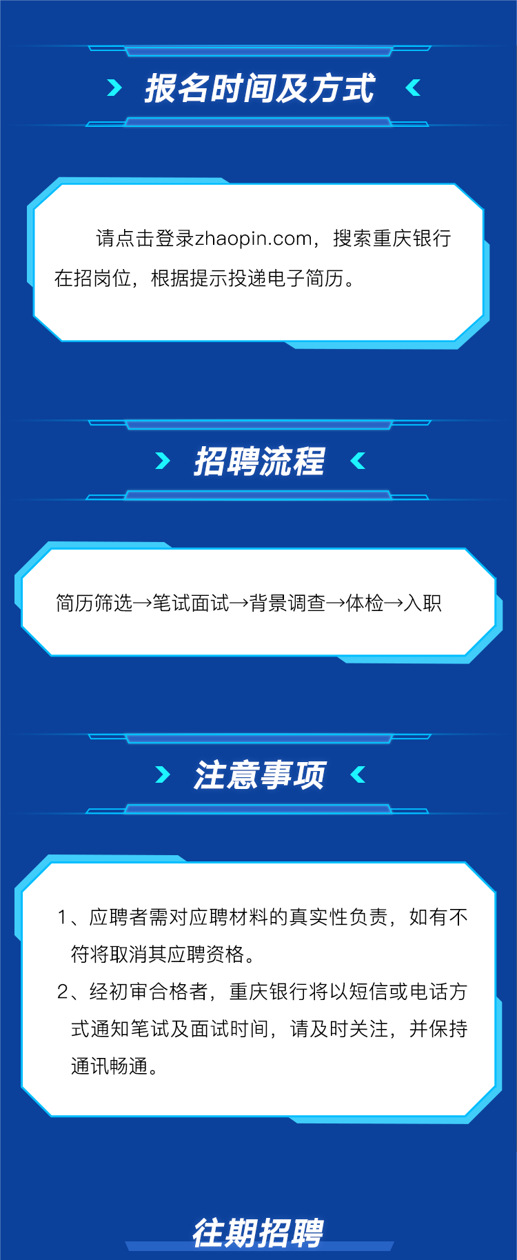 (1)基本要求:30周岁及以下,思想素质好,遵纪守法,无违规违纪行为记录,身体健康。具有高度的责任心和敬业精神,具备良好的学习能力、沟通能力和团队合作意识。