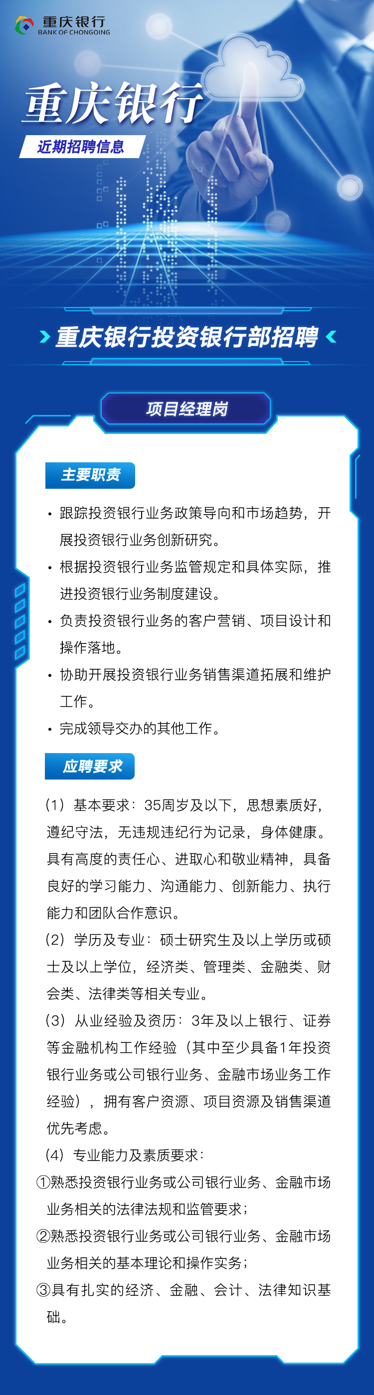 招贤纳士 | 重庆银行投资银行部招聘啦!