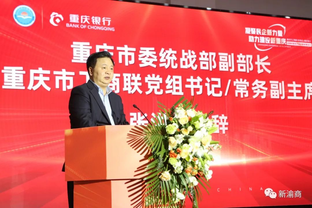 张洪斌致辞说,近年来,市工商联与重庆银行始终保持着良好的沟通联系。双方优势互补、相向而行,共同强化银企对接、优化产品配置、深化再贷投放,一大批民营企业从中受益,双方的务实合作成效明显、日趋紧密。此次市工商联与重庆银行战略合作签约,是双方深化合作的新成果,更是双方在新形势下携手同行、共创未来的新起点,相信一定能够为重庆民营经济发展注入更多动能、激发更大活力。希望全市工商联组织以此次签约为契机,建立完善工商联与重庆银行服务民营企业的常态化工作机制。要广泛推送重庆银行支持民营经济发展的融资政策,努力让企业应知尽知、能享尽享;要不断拓展合作的广度和深度,持续细化金融服务举措,推动战略合作落地走深;要开展好银企对接活动,让更多企业零距离接触重庆银行,推动达成更多融资合作,切实提升民营企业融资获得感;要探索总结金融支持民营企业发展的好经验好做法,努力形成一批可推广、可复制的先进典型,共同营造银企良性互动的浓厚氛围。