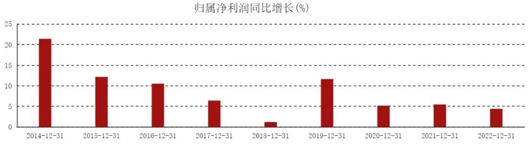 归属净利润方面,2022年重庆银行还算过得去,同比增长4.38%,为48.68亿元。在差不多体量银行里不算太拖后腿,当然也没有很亮眼。