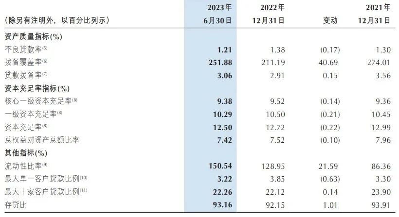 2)拨备覆盖率251.88%,2022年末为211.19%,增长40.69个百分点。2021年末为274.01%。