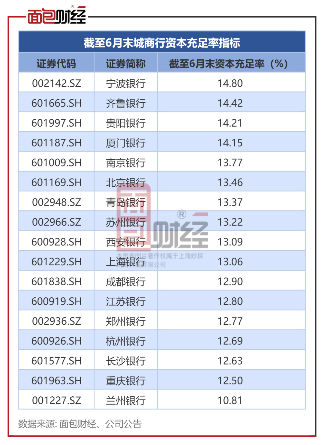 数据显示。截至6月末,该行核心一级资本充足率为9.38%,较上年末下降0.14个百分点;一级资本充足率为10.29%,较上年末下降0.21个百分点;资本充足率为12.5%,较上年末下降0.22个百分点,与其他上市城商行相比,重庆银行的资本充足率为倒数第二。