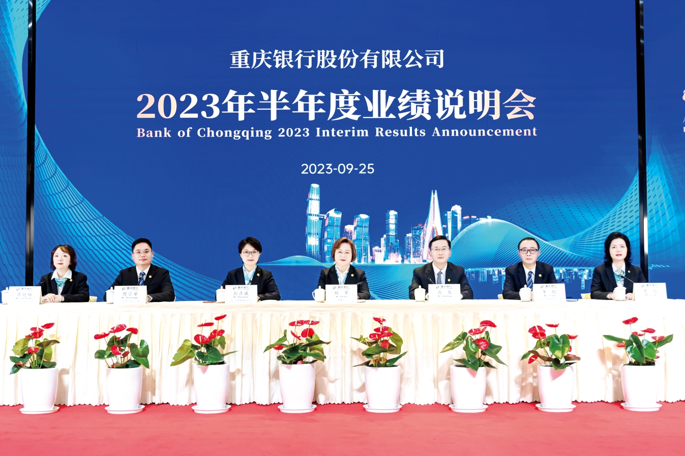 9月25日,重庆银行股份有限公司(以下简称“重庆银行”,股票代码:601963.SH 01963.HK)以“视频录播+文字互动”形式召开2023年半年业绩说明会,董事长林军、拟任行长高嵩、副行长兼董事会秘书彭彦曦及资产负债管理部、公司银行部、个人银行部、风险管理部主要负责人组成的路演团队向全市场推介重庆银行2023年半年度业绩,并回应投资者、分析师、媒体重点关切的问题。