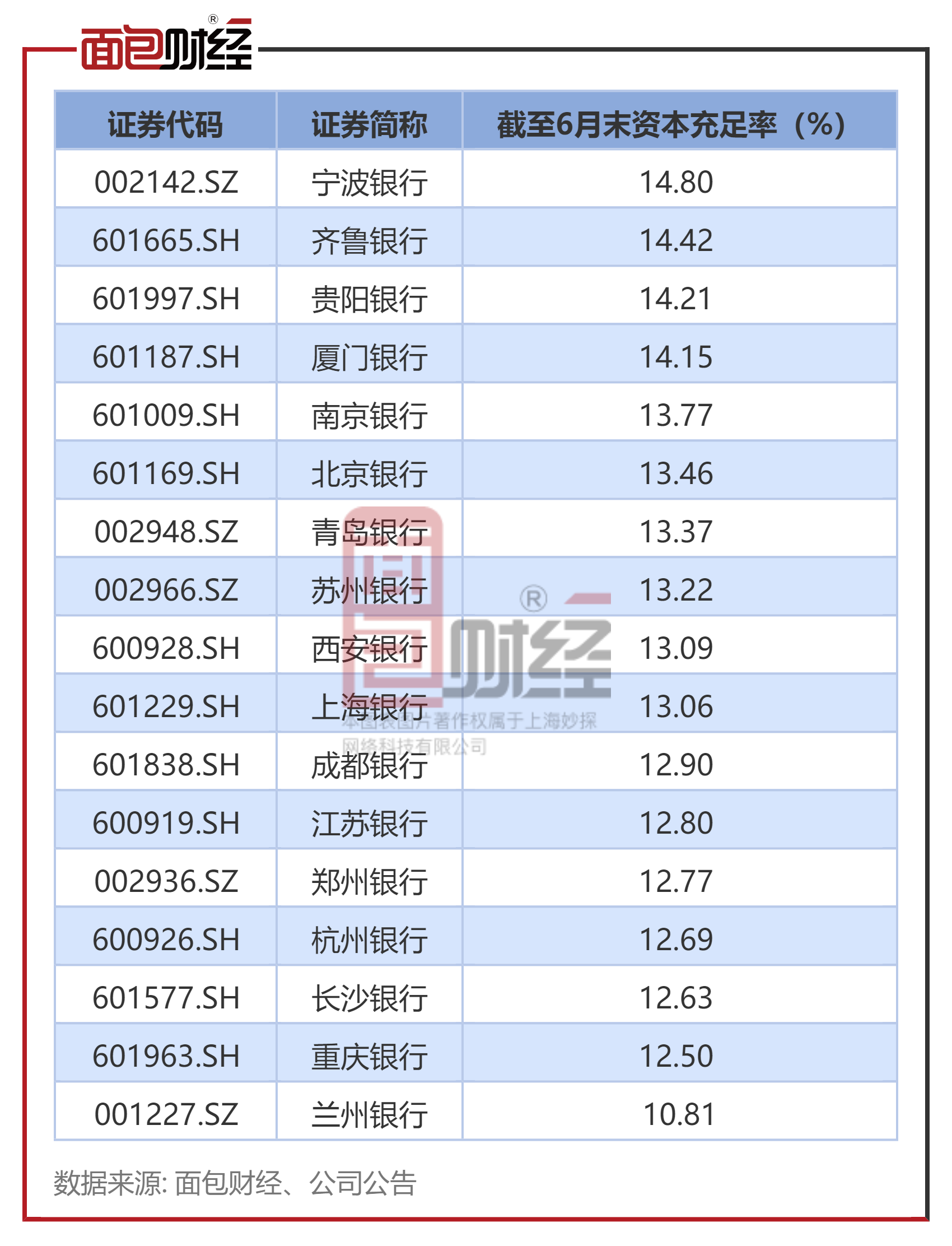 数据显示。截至6月末,该行核心一级资本充足率为9.38%,较上年末下降0.14个百分点;一级资本充足率为10.29%,较上年末下降0.21个百分点;资本充足率为12.5%,较上年末下降0.22个百分点,与其他上市城商行相比,重庆银行的资本充足率为倒数第二。
