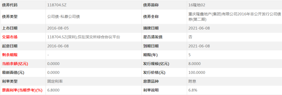 同年6月,爱普地产又发行“16隆地02”(代码118704.SZ),募资8亿元,票息率6.8%,期限5年。