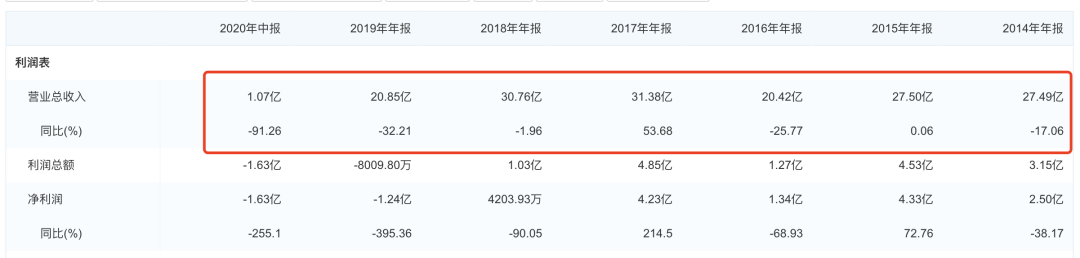 爱普地产究竟是如何走到违约这一步的?从营收表现略可窥见一二。公开资料显示,2014-2015年,其营收稳定在27亿元左右,2016年发债当年,营收下降25.77%到20.42亿;此后2年,营收反弹至30亿元上下。不过,在2019年营收回落至20亿元附近,2020年则大幅下滑至了仅仅1.07亿元,净利润也亏损1.63亿。