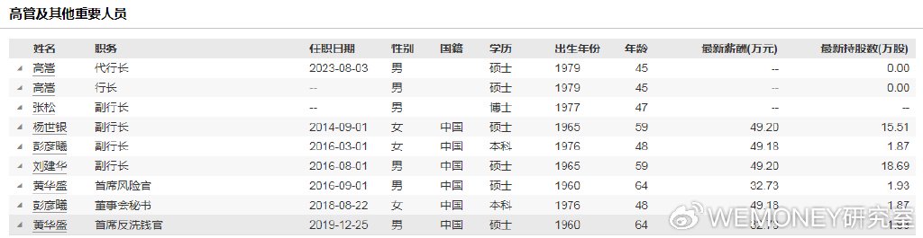 2023年9月15日独立董事、信息科技指导委员会委员邹宏辞任,原因是工作单位管理要求;2023年10月16日,副行长黄宁辞任,原因是工作调动;2023年10月17日非执行董事杨雨松辞任,原因是工作调动;2023年11月21日,副行长周国华辞任,原因是工作调动。